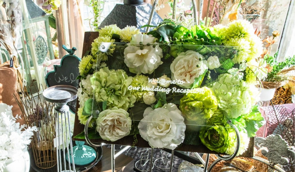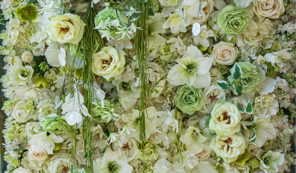 季節のアレンジメントや上質な花束、ドライ・プリザーブド商品、グリーン装飾に加え、人生の節目を彩るウェディング装花では、洗練された美しさと物語性を大切にした空間演出を実現。